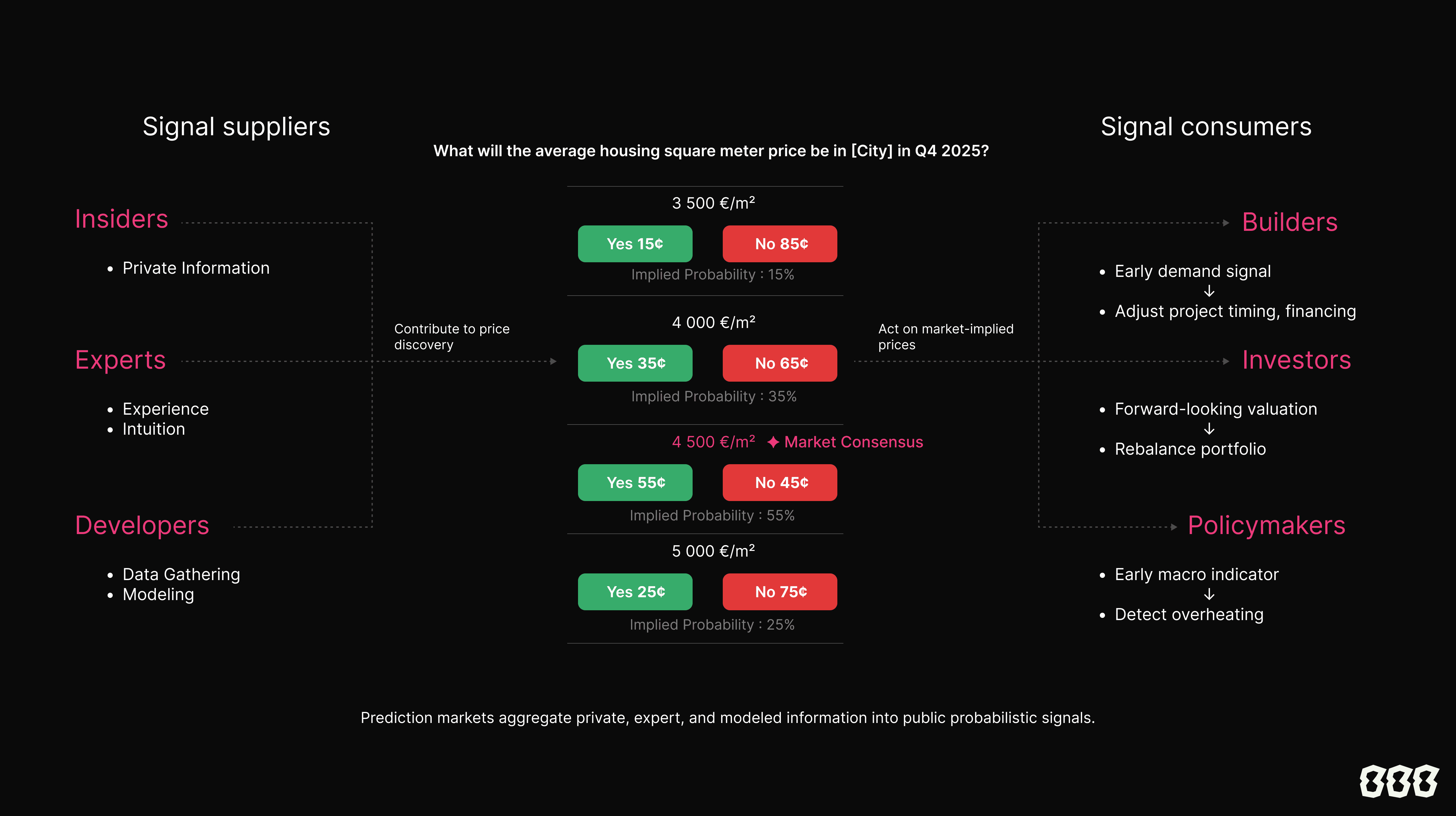 That’s what turns speculation into a real market. In this article, we explore both sides of that mechanism: how prediction markets can hedge volatility in fast, but flawed digital economies, and how they can forecast delayed realities in slow-moving markets like real estate.